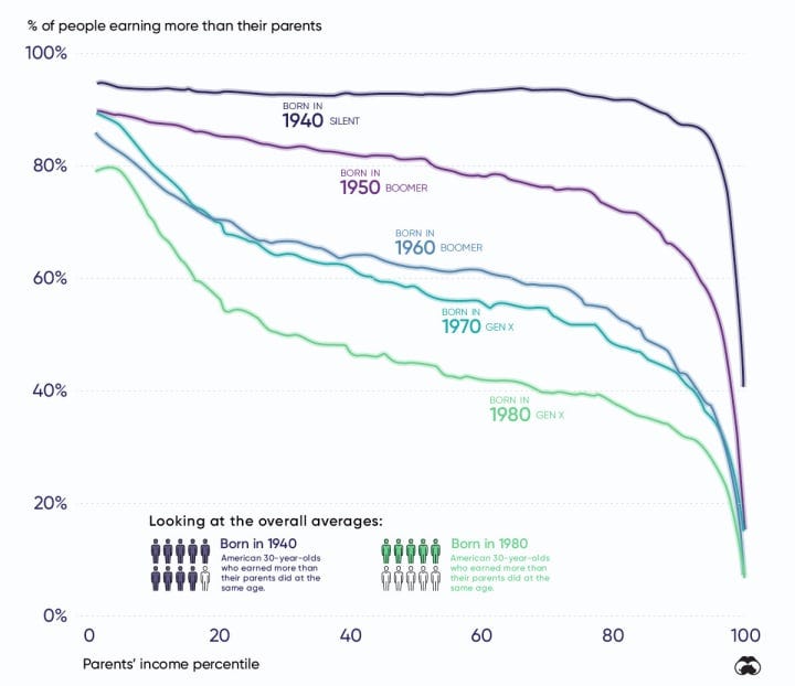 Each New Generation Has A Harder Time Overcoming the Wealth of Their Parents.