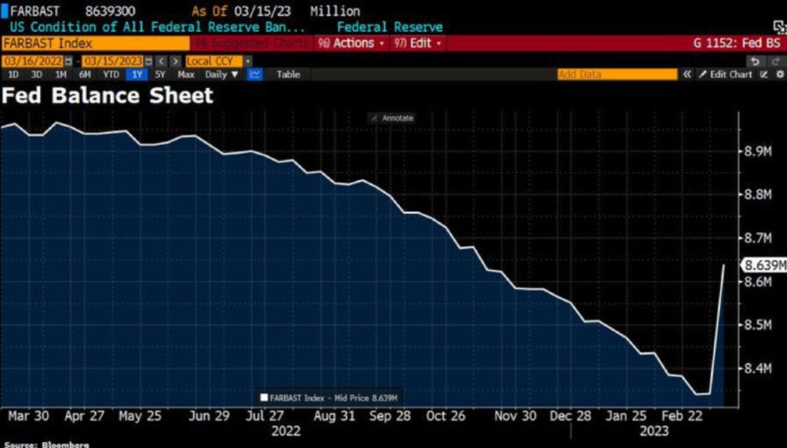 Federal Reserve's Balance Sheet Increases by $297 Billion Due to Failed Banks and Bank Term Fund Program.